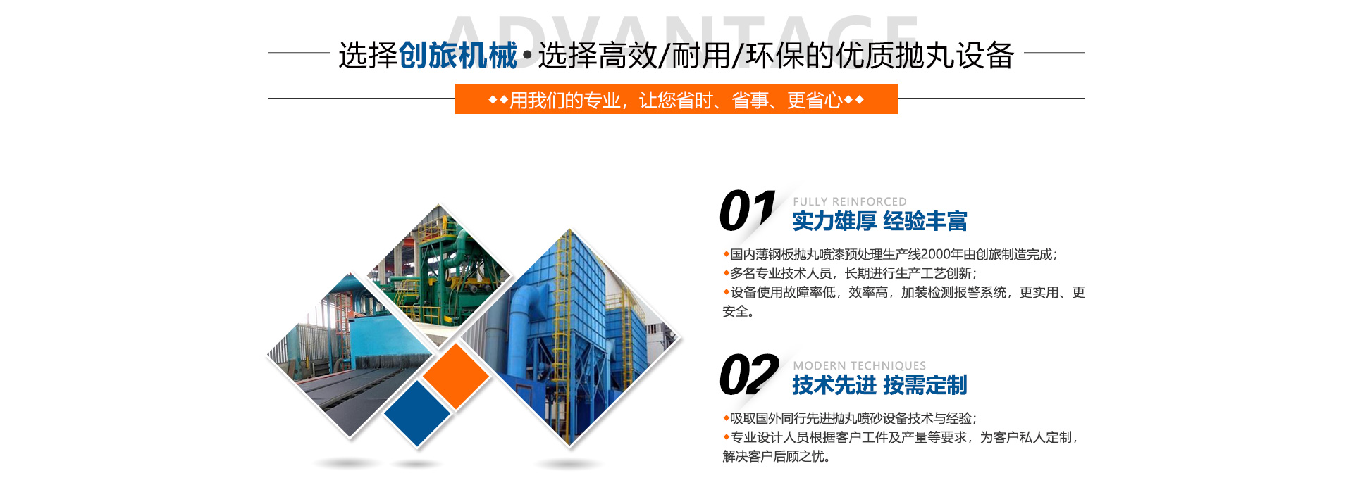 合肥市創(chuàng)旅機(jī)械有限公司是專業(yè)的噴砂房、拋丸機(jī)生產(chǎn)廠家,生產(chǎn)不同型號不同價格的江蘇拋丸機(jī)、江蘇 噴砂房、除銹機(jī)、拋丸清理機(jī)械、自動噴砂機(jī)械、通風(fēng)除塵設(shè)備、砂處理成套設(shè)備、鋼丸及各種耐磨合金 件的大型專業(yè)化制造企業(yè)。 我公司愿與各行各業(yè)的朋友交往與合作,使您的產(chǎn)品更光彩! 產(chǎn)品有:鋼板預(yù)處理生產(chǎn)線,噴砂房,噴砂機(jī)械,噴砂設(shè)備,拋丸機(jī),拋丸清理機(jī),混砂機(jī),噴丸機(jī) ,拋 噴丸機(jī),履帶式拋丸清理機(jī),鋼板除銹機(jī),鋼材除銹機(jī),板...